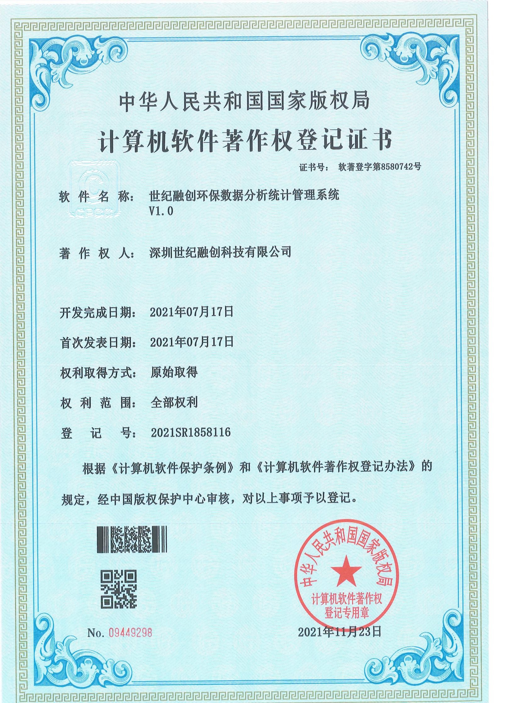 环保数据分析统计管理系统著作权证书